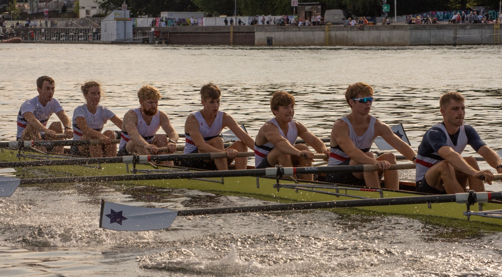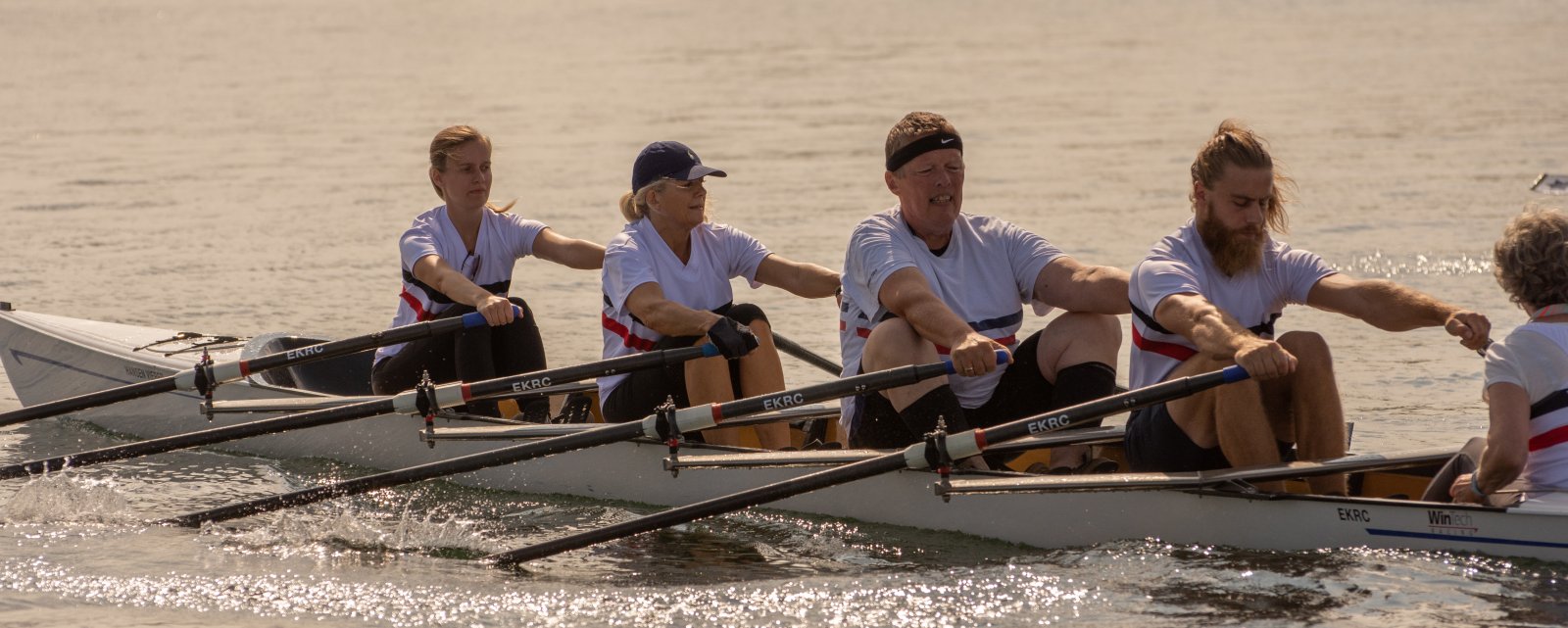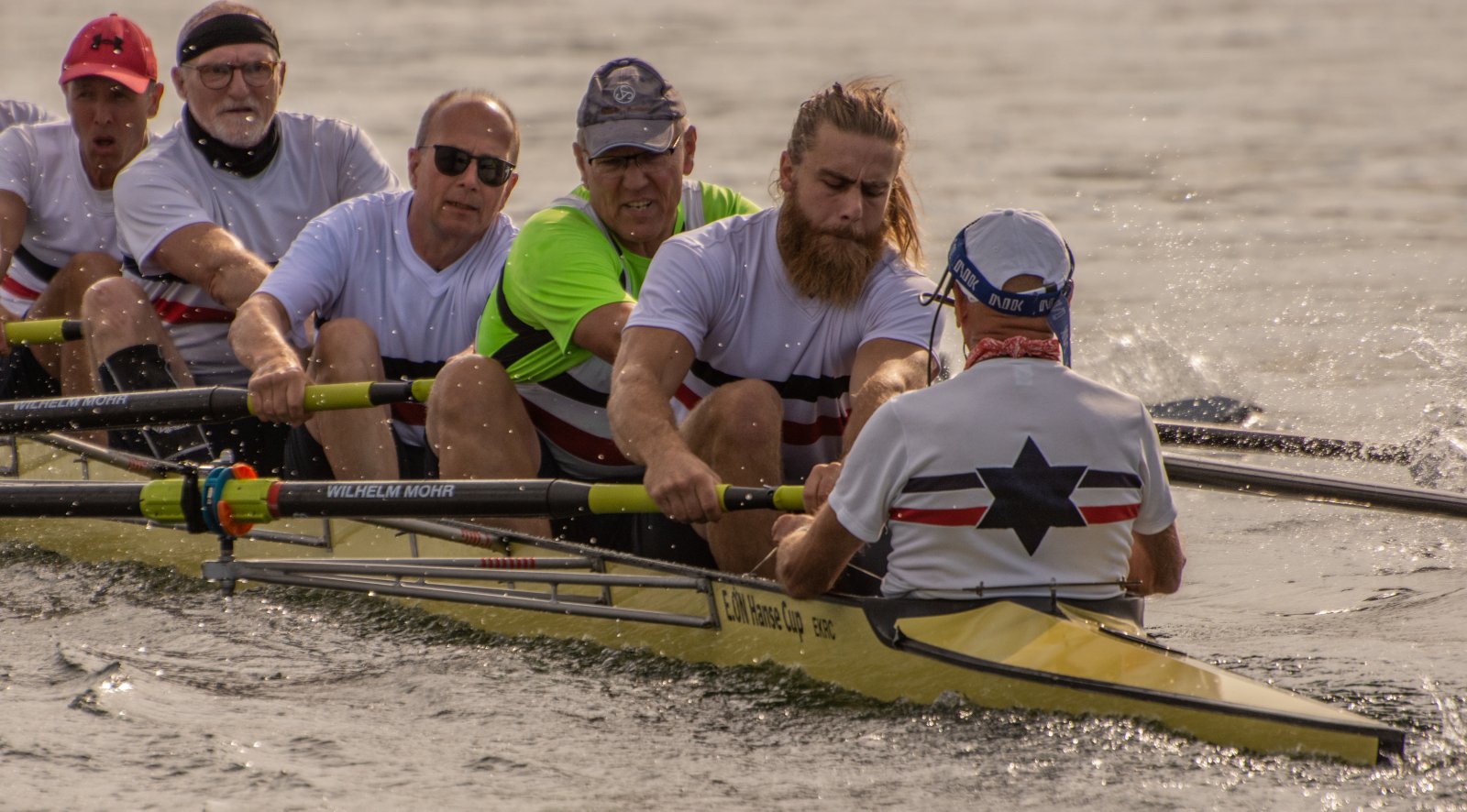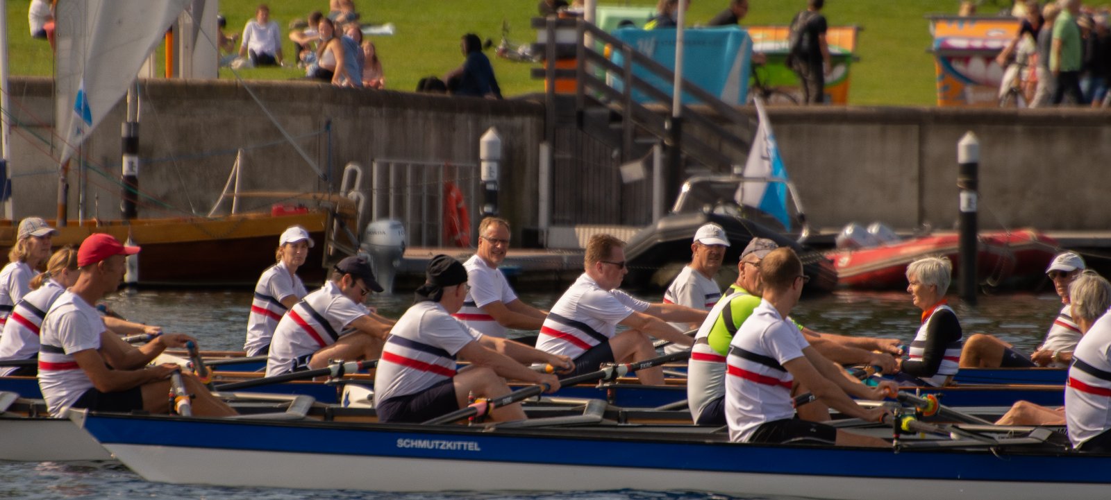 Also geht es nach der Begrüßung durch unseren Vorsitzenden direkt aufs Wasser: Die Clubregatten beginnen mit dem Rennen um den Clubeiner. Der anschließend geplante Clubzweier muss nach dem Start abbrechen – es gib Probleme mit einem der Boote. Doch wir sind ja flexibel: Die Zweier zurück an Land, die nächsten Rennen gestartet und in der Zwischenzeit einen anderen Zweier hergerichtet. Die Rennen verlaufen auf dem nahezu glatten Wasser weitgehend reibungslos. Das freut die Ruderer, der Fotograf kommt dadurch allerdings um das ein oder andere sonst gerne genommene dramaturgisch reizvolle »Krebsmotiv« ;-). Schön, dass sich auch dieses Jahr wieder viele Neue, auch Anfänger aus diesem Jahr, in das Renngeschehen getraut haben!